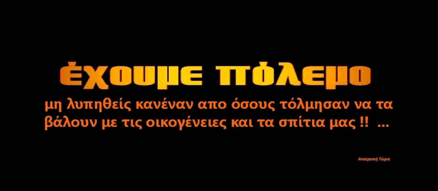 Καταλαβαίνετε λοιπόν ότι όπως φωνάζουμε εδώ και 15 τουλάχιστον χρόνια, βρισκόμαστε σε πόλεμο για την ψυχή της πατρίδας μας και ότι ανεξάρτητες φωνές όπως η ΑΝΑΤΡΟΠΗ ΤΩΡΑ κ.ά., αποτελούν την τελευταία γραμμή άμυνας ενάντια στη μηχανή των εταιρικών μέσων ενημέρωσης που σας θέλει υπάκουους, παραπλανημένους και καταναλωτές...